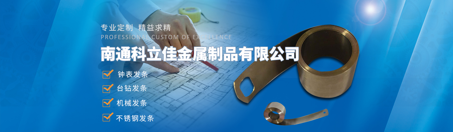 南通科立佳金屬制品有限公司(海門海南發(fā)條廠)建于1995年。現(xiàn)有職工人數(shù)50多人是專業(yè)生產(chǎn)多品種花式發(fā)條的骨干企業(yè),年生產(chǎn)能力500萬條,單品生產(chǎn)在100萬條以上。主要產(chǎn)品為鐘表發(fā)條、臺鉆發(fā)條、機械發(fā)條、不銹鋼發(fā)條、小型發(fā)動機起動發(fā)條、電刷彈簧、精良木工帶鋸、 精良裁布鋼帶和彈簧帶鋼類的各色制品制件。產(chǎn)品行銷全國20多個省、市、自治區(qū)。同上海正峰公司、美國百得楊州電動工具分公司、朝鮮自治區(qū)延邊龍川公司結為長期伙伴關系......
